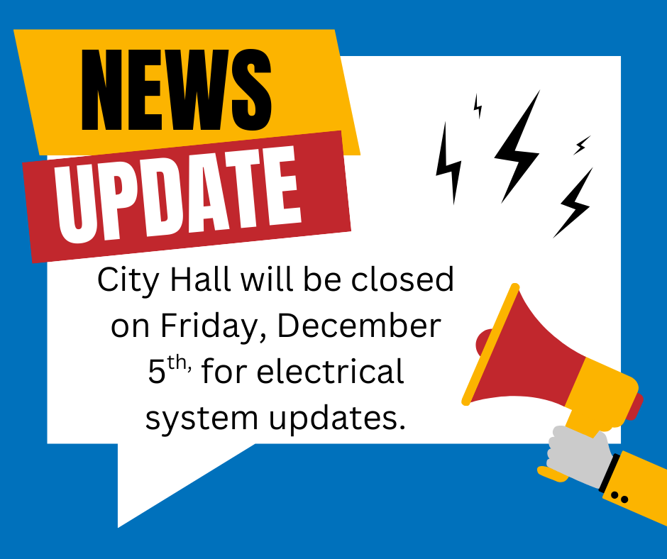 City Hall will be closed on Friday, December 5 for electrical system updates.